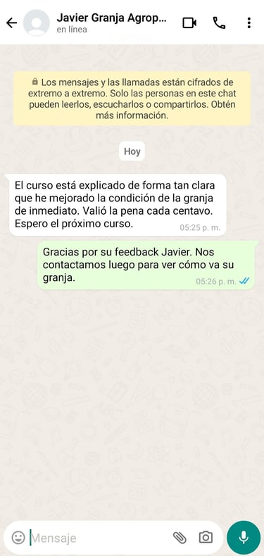 Si por alguna razón sientes que este curso no es para ti, o si consideras que la información no cumple con tus expectativas para aumentar la productividad y rentabilidad de tu granja, simplemente contáctanos dentro de los 7 días siguientes a tu compra.